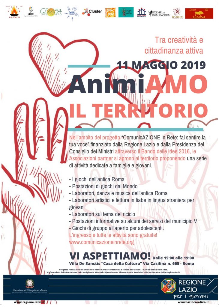 I ragazzi del Borgo Ragazzi don Bosco partecipano alla realizzazione dell’evento AnimiAMO il territorio: tra creatività e cittadinanza attiva che si terrà l’11 maggio 2019 dalle ore 15.00 alle ore 19.00 presso Villa de Sanctis “Casa della Cultura” in via Casilina n. 665 – Roma, promosso da AIM – Agenzia Intercultura e Mobilità.